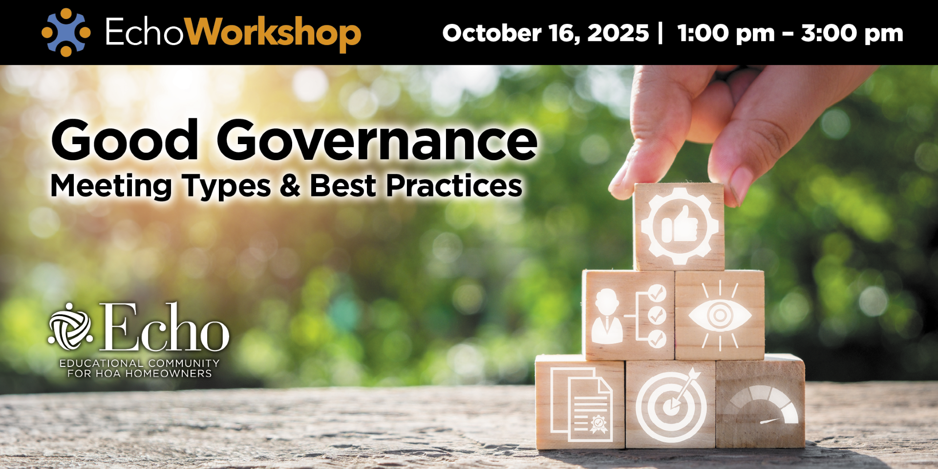 October 16 @ 1:00 PM - 3:00 PM Educational Workshop: Good Governance – Meeting Types & Best Practices